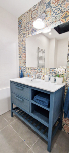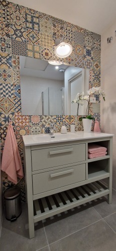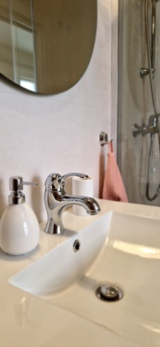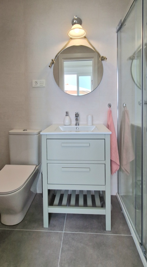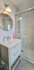 The bathroom has its respective sets of bath and hand towels and hairdryer. You can count on finding always toilet paper and hand gel.